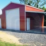 The enclosed garage displayed above is 20’W x 40’L x 10’H with a vertical roof, two 10’x10’ garage doors, three 8’x8’ garage doors, one walk-in door, two windows, and one lean-to. This multi-purpose structure is perfect for sheltering vehicles inside with frequently used equipment under the lean-to. For just a small deposit it can be yours today, delivered to the site and installed. Call (980) 321-9898 today for more information on this structure!
