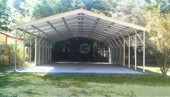 Dimensions for the featured carport are 24’W x 41’L x 9’H. With partially closed sides, this carport is great for storing vehicles, equipment, watercraft, and so much more! It can also be used as an open-air workshop.