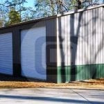 We have pictured a 40x36x20 Vertical Roof Commercial Workshop. It has all vertical sides and ends, (1) 10×10 metal roll-up door on the front wall and (1) 8×8 roll up door on the long 36′ side.