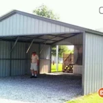 This 24’x25’x10′ Double Garage with dual 10’x25’x7′ Lean-tos has it all, providing you with enclosed security and open-air coverage in one sleek package. This building offers:
