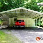 This spacious 30’x41’x 12′ metal workshop offers ample room to pursue your hobbies or keep things organized. And the included 12’x40’x8′ adds even more functionality to suit your needs. Learn more about this structure below.